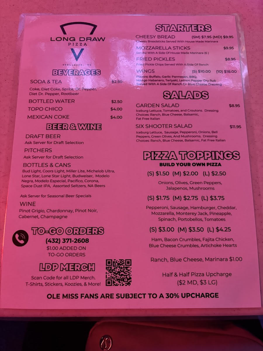 At Long Draw Pizza, the menu is a testament to creativity and quality. Here are some standout highlights: